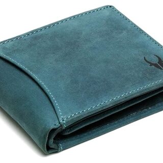 Blue Leather Wallet for Men I 9 Card Slots I 2 Currency & 2 Secret Compartments I 1 Zipper & 3 ID Card Slots