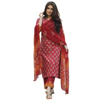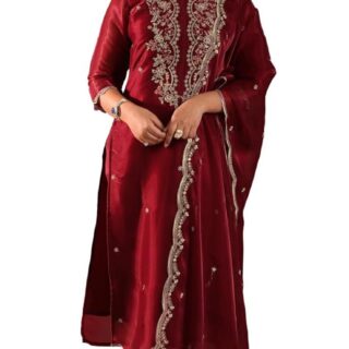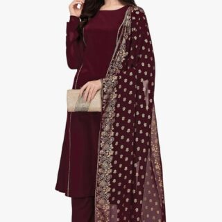 GoSriKi Women\'s Rayon Floral Printed Straight Kurta with Pants & Dupatta (Shank-Maroon-Nw08-GS)