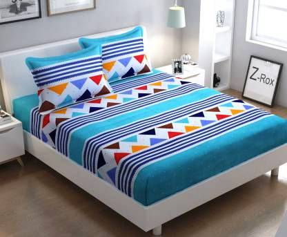 TIB 130 GSM Cotton Feel Polycotton Printed King Size Bed Sheet with 2 Pillow Covers,90X100 Inches, Blue